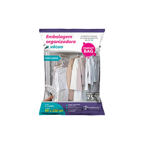 Embalagem Organizadora a Vácuo C/ Cabide - Compact Bag - 60x100cm